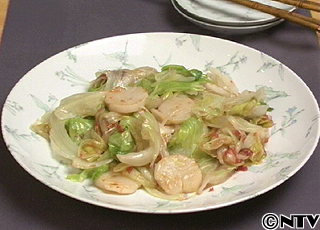 帆立は焼く直前に水気をふいて粉をまぶします。