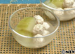冬瓜は皮の緑色が残すように、ピーラーで皮をむくとよい。