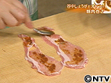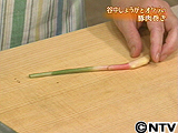 谷中しょうがにはみそ、オクラには梅肉をぬった豚肉を巻きつけます。