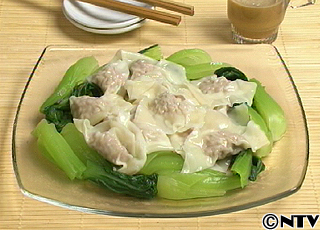 チンゲンサイをゆでた湯でワンタンもゆでましょう(少ない場合は湯を足して)。