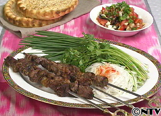 一緒に添える玉ねぎスライス、コリアンダー、あさつきはお決まりのつけ合わせ、玉ねぎにはチリパウダーもお忘れなく!