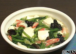 豆腐を崩さないように、煮汁にとろみをつけてから、豆腐とかにの身を加えて温めて仕上げます。(豆腐が熱くなればOK、あまり長く煮ないこと)