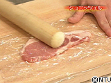 肉はラップに挟んで叩いて薄くのばします(やわらかく)。