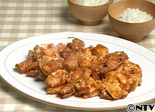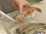 えびの頭からみそを木ベラで押し出すよう炒めるのがミソ。