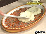 マッシュポテトでひき肉だねをサンド・・・肉が上面に見えないようにポテトは少しずつ広げましょう。