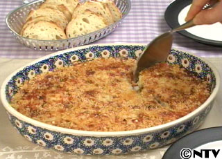 マッシュポテトでひき肉だねをサンド・・・肉が上面に見えないようにポテトは少しずつ広げましょう。