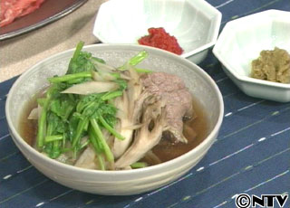 食卓では牛肉とせりを加えてさっと火を通していただきましょう。