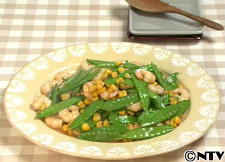 絹さやはゆでずに直炒めにするので、筋をひき炒める直前まで水につけておき、表面についた水気で蒸し炒めにします。