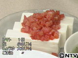 ■ 材料 (4人分) 豆腐・・・1丁 トマト・・・1個 塩・・・小さじ1/2 しょうゆ・・・大さじ1/2 ごま油・・・大さじ1/2 ■ 作り方 冷奴に角切りのトマトをのせ、塩、しょうゆ、ごま油を上からまわしかけます。