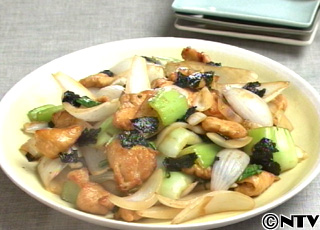 新玉ねぎと鶏肉ののり炒め
