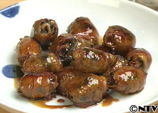 肉がほどけてしまわないように、必ず巻き終わりを下にして、焼き始めること。