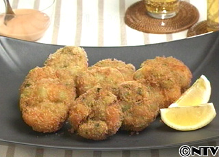 パン粉をまぶしたらすぐに揚げる。時間をおくと材料から水が出て揚げたときバラバラになりやすい。