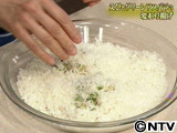 (2) 残りのパン粉をたねの上にかけるようにのせる。