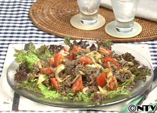 このサラダ、マリネ液にしょうゆやごま油を使っているのでごはんによく合います。