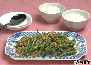 いんげんは先に食べられる固さになるまで炒めて、火を通しておくこと。