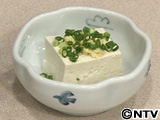 鍋に塩卵を割り入れて空炒りし、青みとともに冷ややっこにのせる。