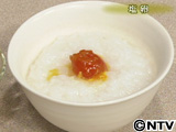 塩卵を割ってそのままおかゆにのせる。好みで全卵でも黄身だけでもよい。
