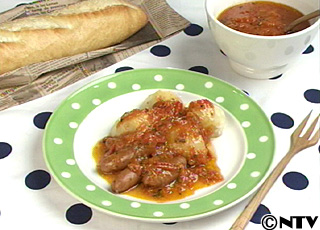 じゃが芋をゆでている途中にソーセージを加えて、一緒に茹で上げてもよい。