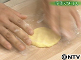 ラップにはさんで麺棒でのばす(丸くなるように、生地をまわしながらのばす)。