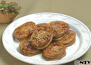 肉だねはれんこんの穴にも入るようにしっかり挟むこと。