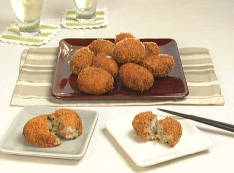 たねが柔らかいので、衣の小麦粉をまぶしながら成形するとよい。