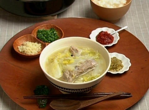 白いごはんにスープをかけて薬味といっしょに食べるのがおすすめ。