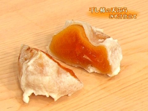 ■干し柿の天ぷらみそ汁仕立て