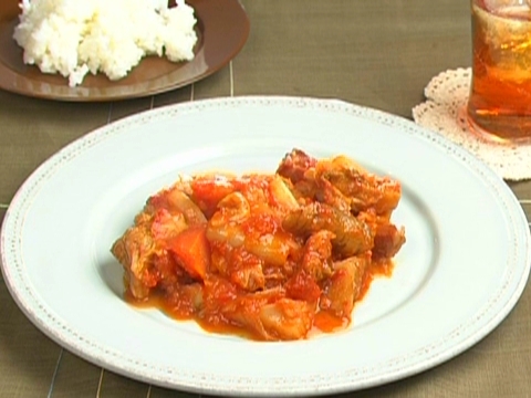 火加減がポイント、最初は強めの中火で10分ほど煮、煮立ってきたら弱火で煮込みます(野菜の水分の出具合で加減する)。