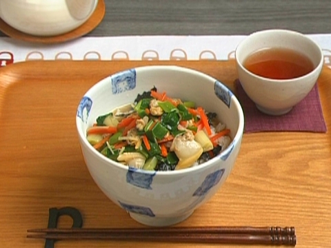 あさりは完全に貝殻が開く前にザルにあけて、身をはずします(このときは半生でOK)。