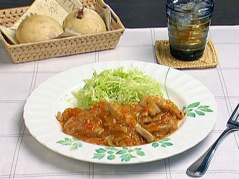 キャベツと白いごはんを添えてワンプレートディッシュがおすすめです。