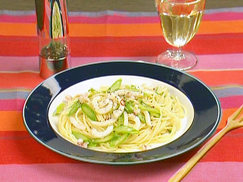 ゆで汁を加えたら強火で、油とゆで汁が混ざりトロリとするまで煮詰めるのがポイント。