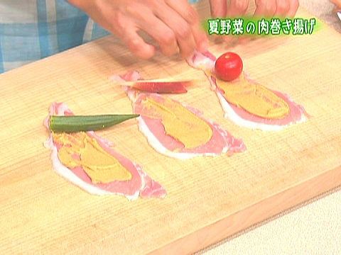 野菜の火の通り具合を考慮し、1種類ずつ油に入れて揚げましょう。