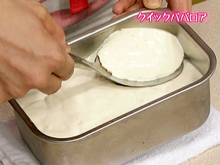 アイスクリームは軽く練ってから(溶かしすぎないで)、ゼラチン液と合わせます。