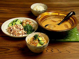すり鉢がない場合は市販の練りごまを利用するとよい。みそは粒のないものを使うか、粒がある場合はごまとすり混ぜたあと、万能こし器で冷水のほうにこし入れるとよい。