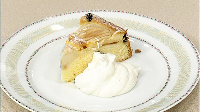焼き上がりはりんごのそばの生地に竹串を刺して確認します。