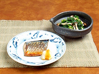 もう一品のおひたしのほうれん草は、ゆでて水気を絞り、1/3量のだししょうゆをかけ、さらに水気をやさしく絞って、余分な水分や苦味、えぐみが消します(だし洗い)。