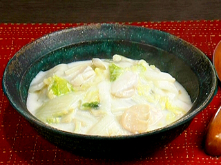 帆立は火を通しすぎると固くなるので長く煮ないこと。