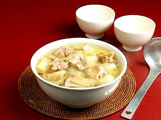 上部の方が温度は高くなるので、鶏肉や固い白菜の葉元は上にのせること。