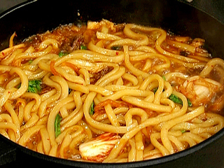 ゆでたうどんを残った汁にからめてどうぞ!(ごはんにも合います)。