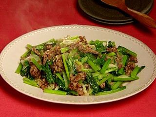 火加減はずっと強火、小松菜を蒸しながら炒めて火を通します(1分くらい)。