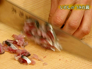 ボールを使わず、まな板の上で作業するとよい(庖丁で叩いて混ぜる)。