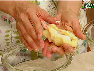 (3)フライ衣も同様に、尾と殻にはつけないで!