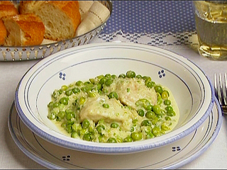 グリンピースの約半量をつぶしてソースになじませるのがポイント。