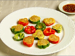 ピーマンが余ってしまった場合は、そのまま粉をまぶして卵液をくぐらせて焼くとよい(肉だねが余ったときは、肉だんごにして焼いて)。