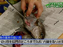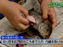 (3)裏面に、腹から肛門まで切り目入れる。