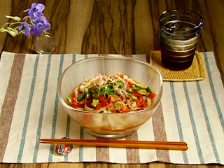 オクラがプラスされると、めんつゆにとろみが出ます、よくよく冷やしていただきます。