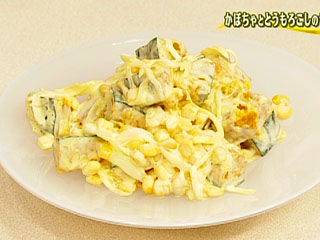 もう一品のかぼちゃのサラダは、かぼちゃに火が通るまで電子レンジで加熱します。