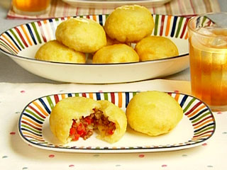 じゃが芋が熱いうちに肉だねを包むこと。