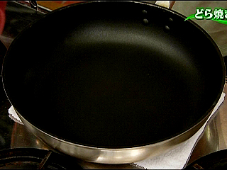 (2)油を薄くひき、生地を流す。