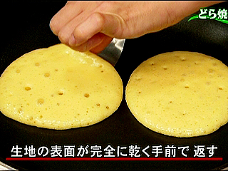 (3)生地の表面がプツプツと穴が出てきたら、表面が乾く手前で裏返す。